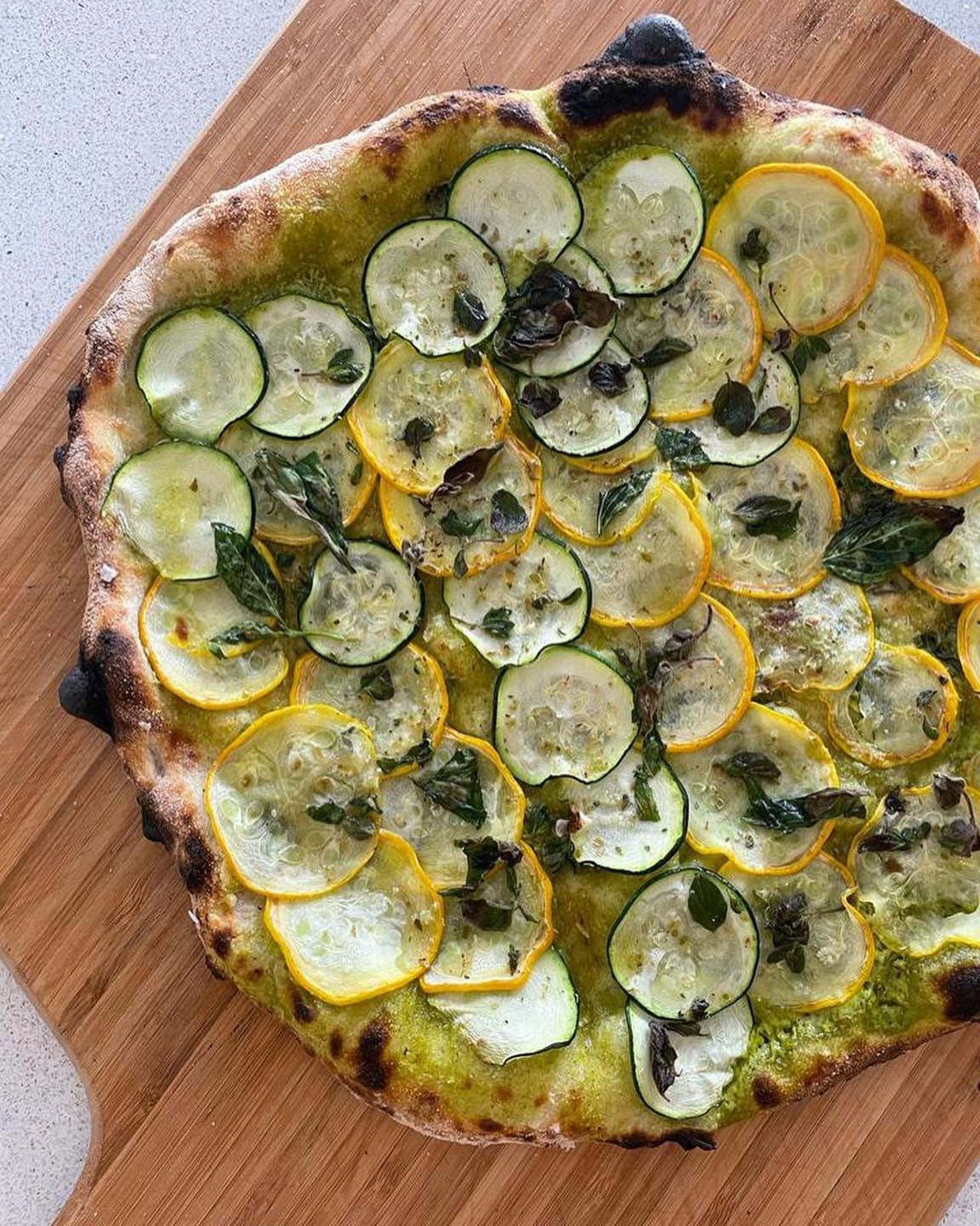 I choose the “Spicy Chorizo”, a tomato base, fior di latte mozzarella, roasted spicy chorizo, black olives and oven roasted cherry tomatoes. That rolling flame cooks the pizza in a matter of minutes, giving it a lovely charred, smoky flavour. No soggy base here. On my second visit I choose the “Zucchini, Oregano and Basil”, a courgette puree base, green and yellow courgettes, oregano, finished with olive oil and fresh basil. I have mine with vegan cheese, however this pizza works just as well without and you can add any other topping from the menu to make it your own. James nurtures the dough like a baby and the result is evident, light, crispy where it should be and not overloaded with sloppy toppings.