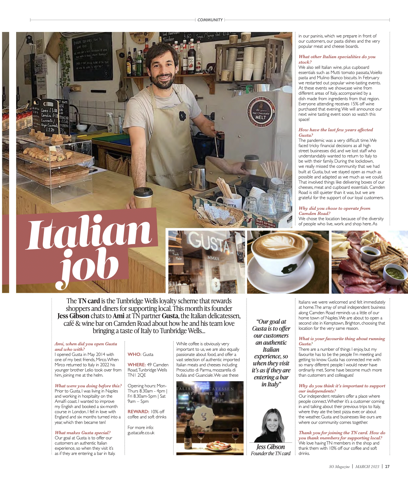 In the March issue of SO magazine we speak to Ami at TN partner Gusta on Camden Road. Read our interview here.